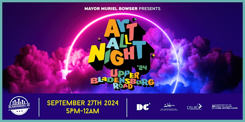 Art All Night, Upper Bladensburg Road NE, DC Squared, 2910 Bladensburg Road NE, September 27, 2024, 5pm, through September 28, 12am, DC Squared and Mayor Muriel Bowser proudly present Art All Night 2024 happening on Bladensburg Road Main Street!