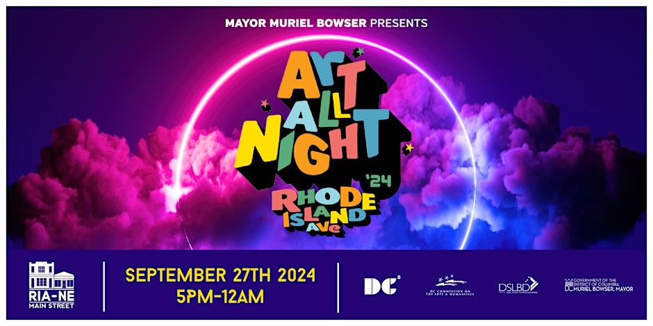 Art All Night, Rhode Island Avenue NE, DC Squared, along Rhode Island Avenue NE (4th Street to South Dakota Avenue), September 27, 2024, 5pm, through September 28, 12am, DC Squared and Mayor Muriel Bowser are thrilled to present Art All Night 2024 happening on Rhode Island Avenue Main Street!