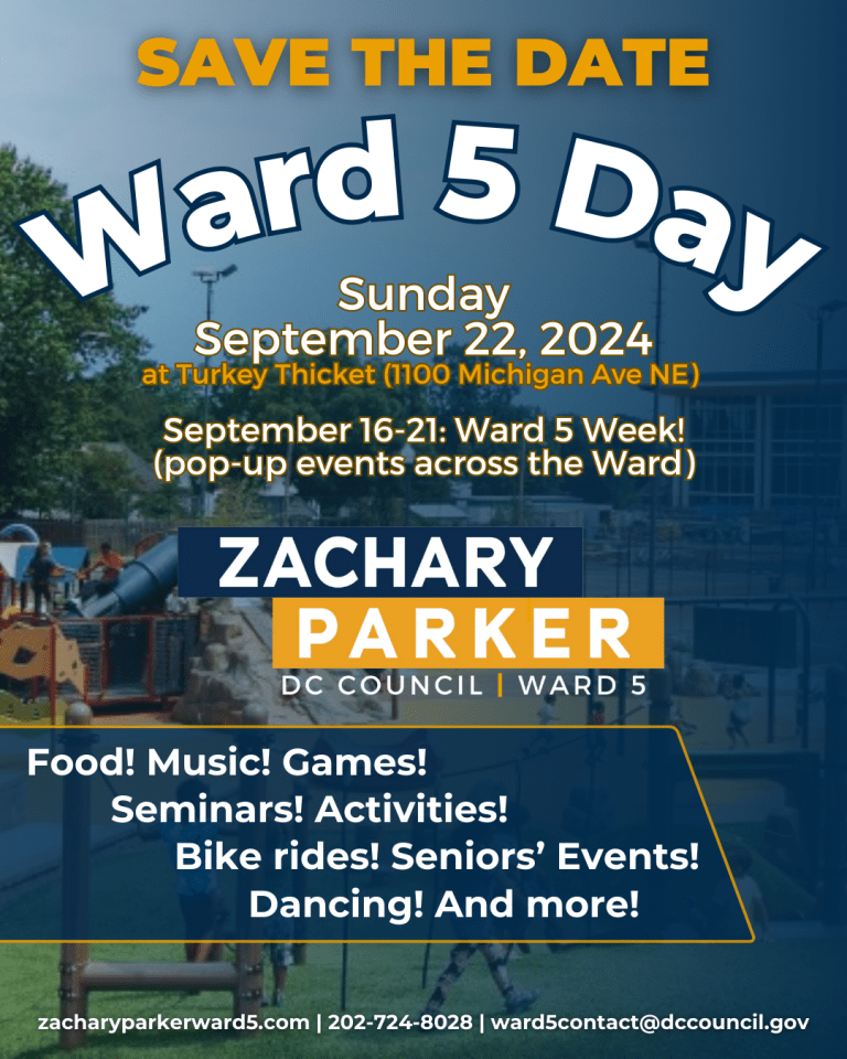 Ward 5 Day Celebration, Turkey Thicket Recreation Center, 1100 Michigan Avenue NE, Sunday, September 22, 2024, 12 noon – 5pm